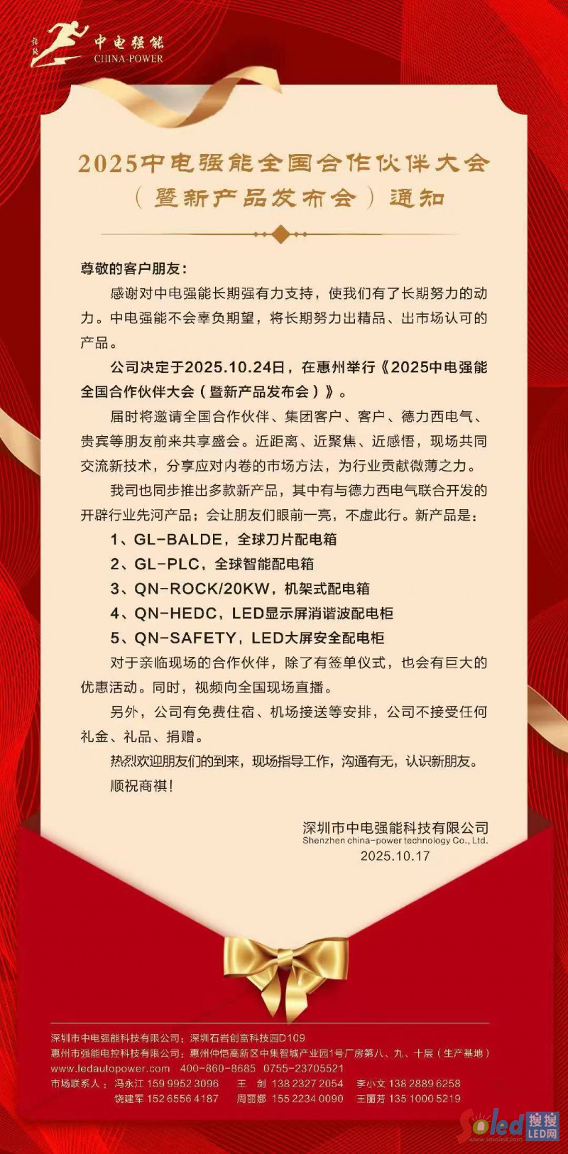 核心提示:這場以“技術(shù)破局·價值共創(chuàng)”為主題的發(fā)布會,或?qū)槲覀兘沂綥ED配電行業(yè)突破內(nèi)卷、邁向高質(zhì)量發(fā)展的重要路徑。   我們不見不散!!