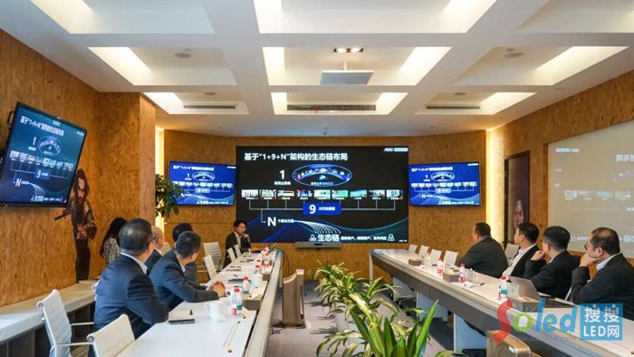簽約儀式后,此次辰顯光電團隊一行參觀了冠捷科技全屏展廳。展廳通過商用、辦公、醫(yī)療、教育、交通、電競等多場景的呈現(xiàn),全面展示了冠捷科技旗下的智慧商顯、顯示器、電視、音視頻等全品類視訊生態(tài)體系,讓辰顯光電一行切實感受到冠捷科技高標(biāo)準(zhǔn)的視訊服務(wù)和深厚的技術(shù)積淀。